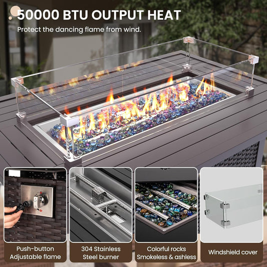 Patio Furniture Set with Fire Pit Table, 5 Pieces Outdoor Furniture