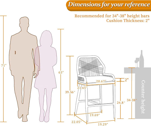 Counter Height Bar Stools Set of 4 Woven Aluminum Modern Barstools